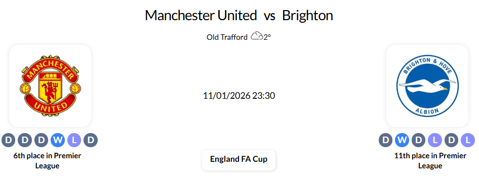 Manchester United will welcome Brighton to Old Trafford on Sunday, January 11, 2026, in a Premier League fixture that promises intensity, tactical intrigue, and major implications in the league standings. With both sides chasing consistency in the second half of the season, this clash could shape momentum heading into late January.